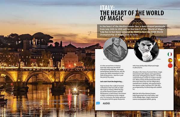 For attendees , FISM 2025 offers unparalleled opportunities to learn , network , and be inspired . Workshops , lectures , and performances by the world ’ s finest magicians will ignite new ideas and push the boundaries of what ’ s possible . Torino ’ s warm hospitality and passion for the arts will ensure an unforgettable experience for all . As we prepare for FISM 2025 , let us remember that magic is a universal language of wonder . Let ’ s come together in Torino to celebrate our craft , share our passion , and create memories that will last a lifetime . The stage is set — let the magic begin ! See you in Torino !